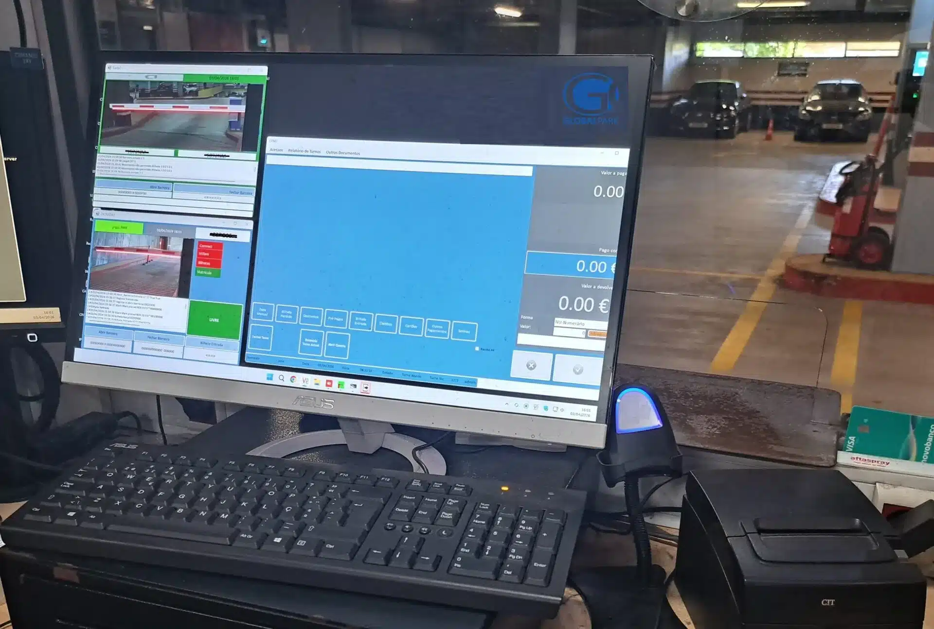 A Central de Gestão com funções de caixa de pagamento manual é usada para controlar, monitorizar e gerir todos os periféricos e suas funções globais de um ou mais parques adjacentes nas seguintes funções:
