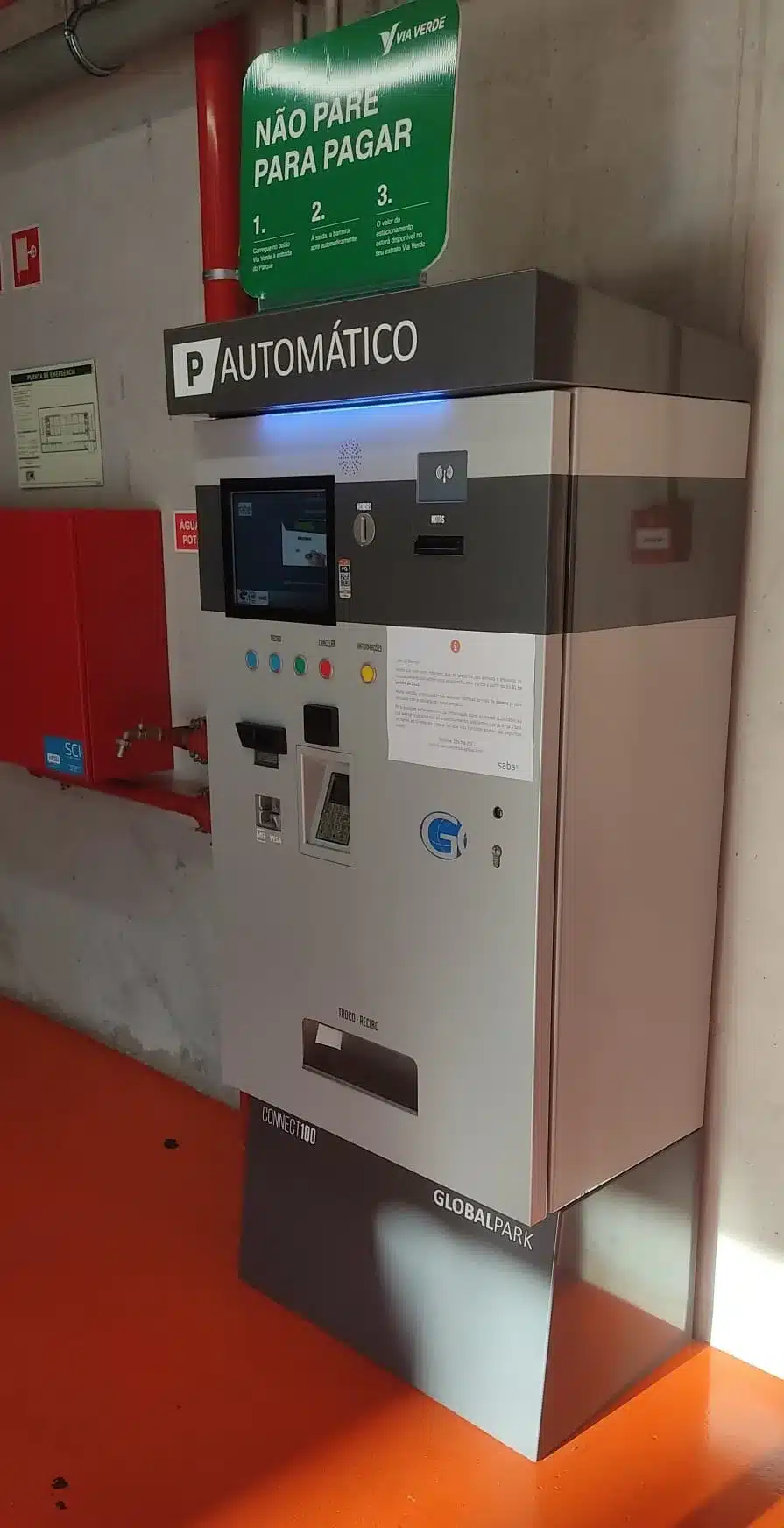Estação automática de pagamento / extra pagamento de bilhetes código de barras e outros meios aprovados, através de moedas e notas Euro ou outra e meios de pagamento. A estação automática de pagamento é fornecida com um monitor TFT, com quatro botões funcionais para orientação do cliente através de menu interactivo.